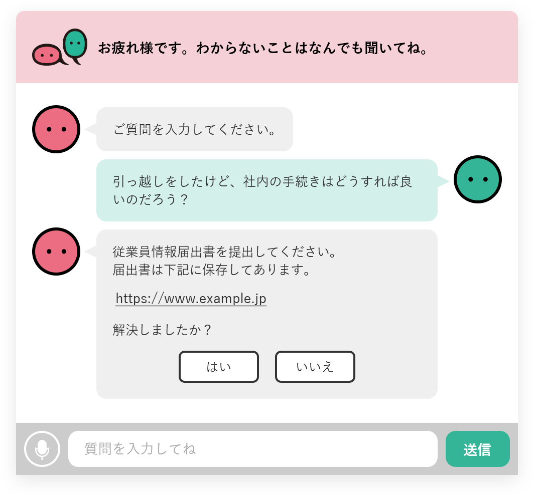 普段、総務や上司に聞いているような言葉でQ&Aiに質問すれば、適切な回答を得られます。